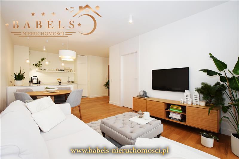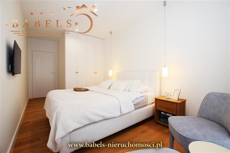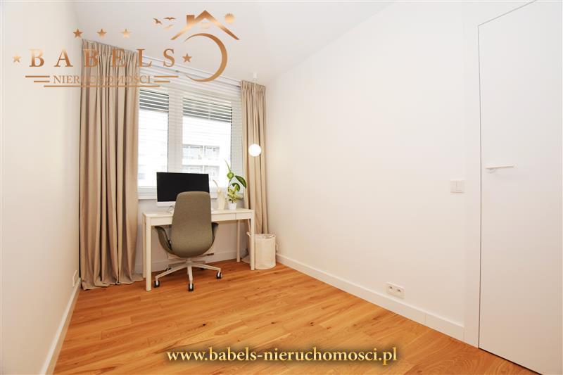 Cena obejmuje wyposażenie, m.in. kuchnia w zabudowie wraz ze sprzętem AGD (płyta indukcyjna, piekarnik parowy, lodówka i zmywarka) oraz szafy w przedpokoju i sypialni widoczne na zdjęciach a także oświetlenie. Pozostałe meble i wyposażenie do uzgodnienia.