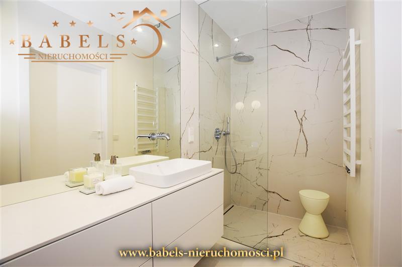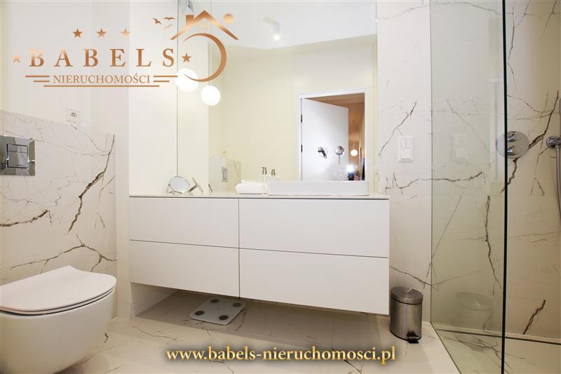 Całość utrzymana w nowoczesnym i estetycznym stylu. Na podłogach w salonie i kuchni oraz sypialni, pokoju i przedpokoju designerskie panele, natomiast w łazience ekskluzywne włoskie kafle. Na ścianach gładź, natomiast w łazience kompozycja efektownego panoramicznego lustra z włoskimi kafelkami. W przedpokoju szafa w zabudowie z systemem drzwi otwieranych.